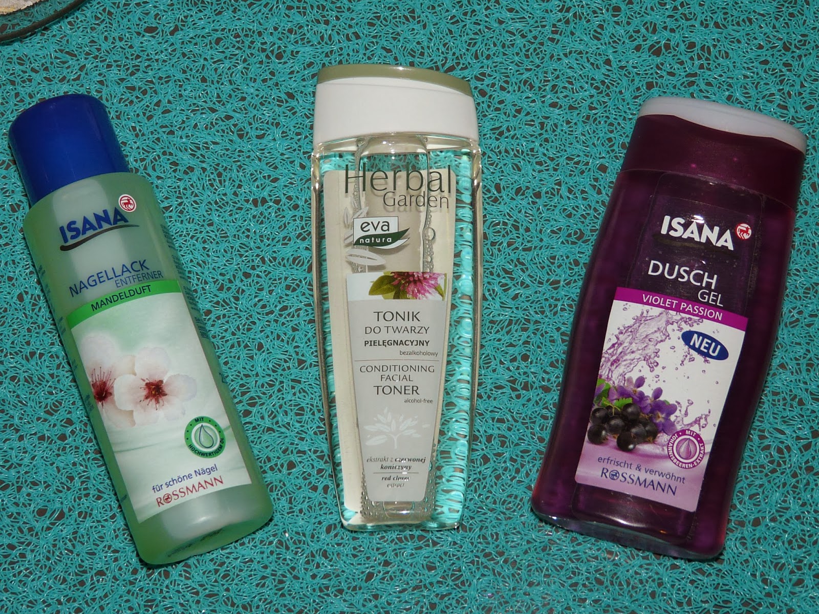 W Rossmannie: zmywacz do paznokci Isana - duża butla, tonik z CND i nowy żel Isany - czarna porzeczka, cudny.