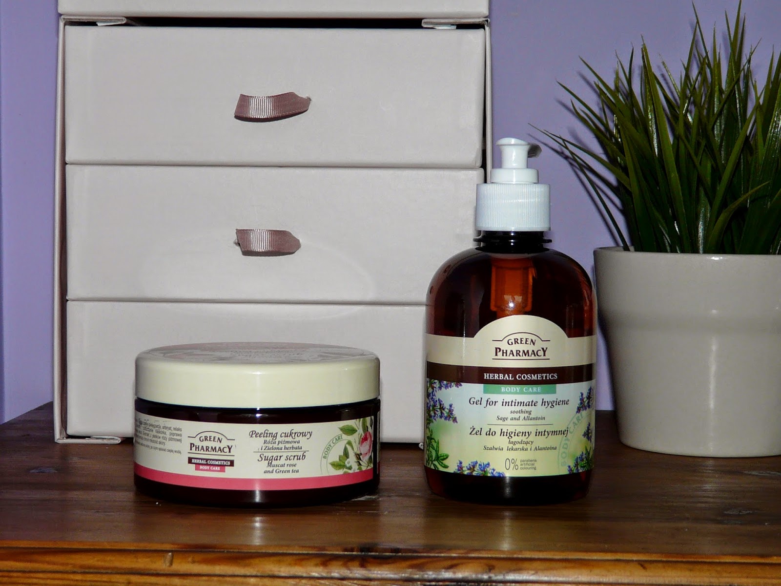 Od Green Pharmacy peeling solny o zapachu różanym i płyn do higieny intymnej, który podobno jest także świetny do twarzy i całego ciała - sprawdzę to.